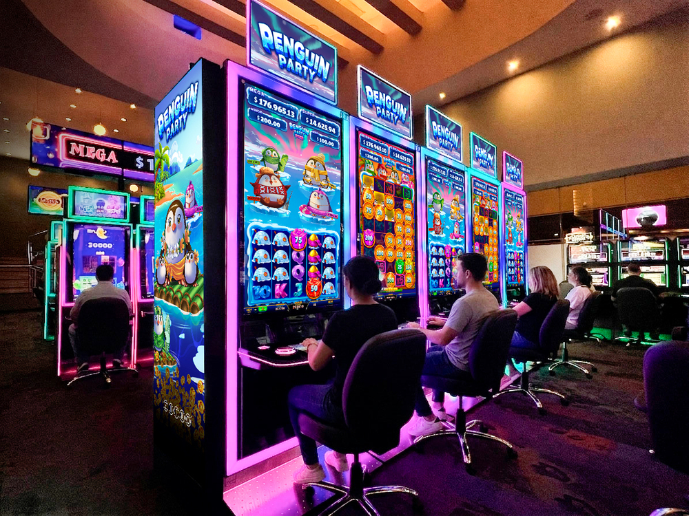 ‘Penguin Party’ llega a Tlalnepantla con dos títulos —Polar y Tropical— y ofrece una mecánica muy dinámica, en la que 4 pingüinos de colores verde, amarillo, rojo y rosa esperan ser alimentados. A medida que el jugador acumula cubos de pescado durante la partida, los personajes evolucionan hasta activar el Bonus Link, que da acceso a hasta cuatro features —Twin, Lifesaver, Multiplier y Big Wave—, desencadenando una auténtica fiesta de premios.