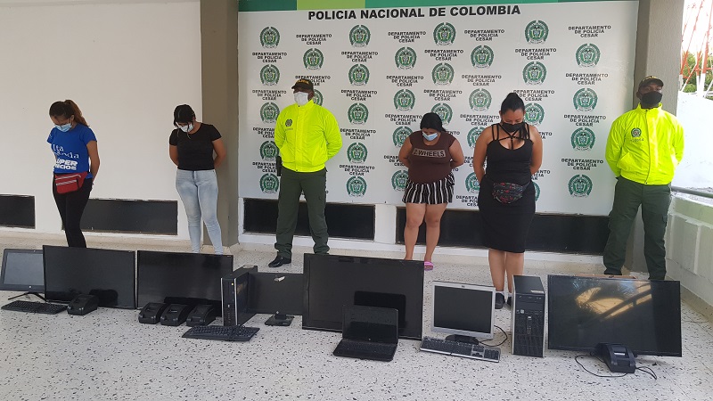 Las detenidas con los dispositivos incautados. FOTO/CORTESÍA.