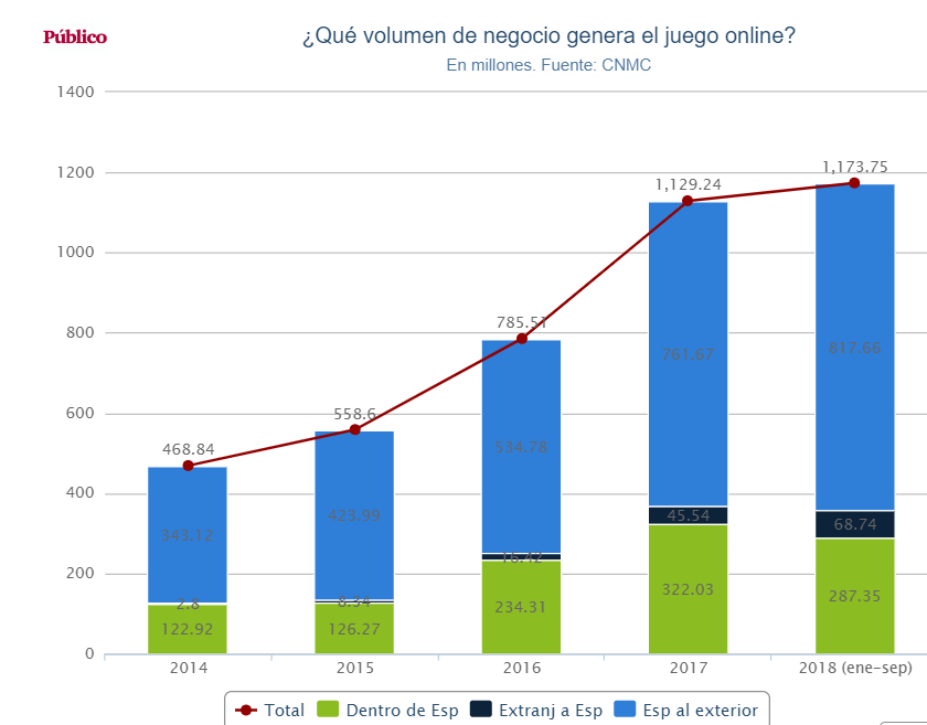 Esos 1.173 millones en nueve meses prácticamente triplican el volumen de dinero que facturaba este sector en España hace solo tres años (558,6 millones en todo 2015) y no andan muy lejos de cuadruplicar el que se daba un año antes, cuando se quedó en 468 antes de iniciar una progresión nada frecuente en el mundo de los negocios.