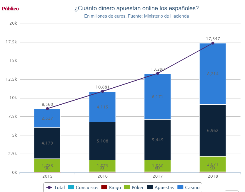 La diferencia entre las cantidades apostadas y los ingresos de las empresa se debe a que, aunque la bolsa de los jugadores sube y baja a lo largo de las partidas de la mayoría de los juegos, el cálculo se realiza sobre el resultado de pérdidas y ganancias finales. Es, en cualquier caso, más del doble de los 316,8 millones en los que Hacienda cifraba ese GGR en 2015 y más del triple de los 229 de 2013.