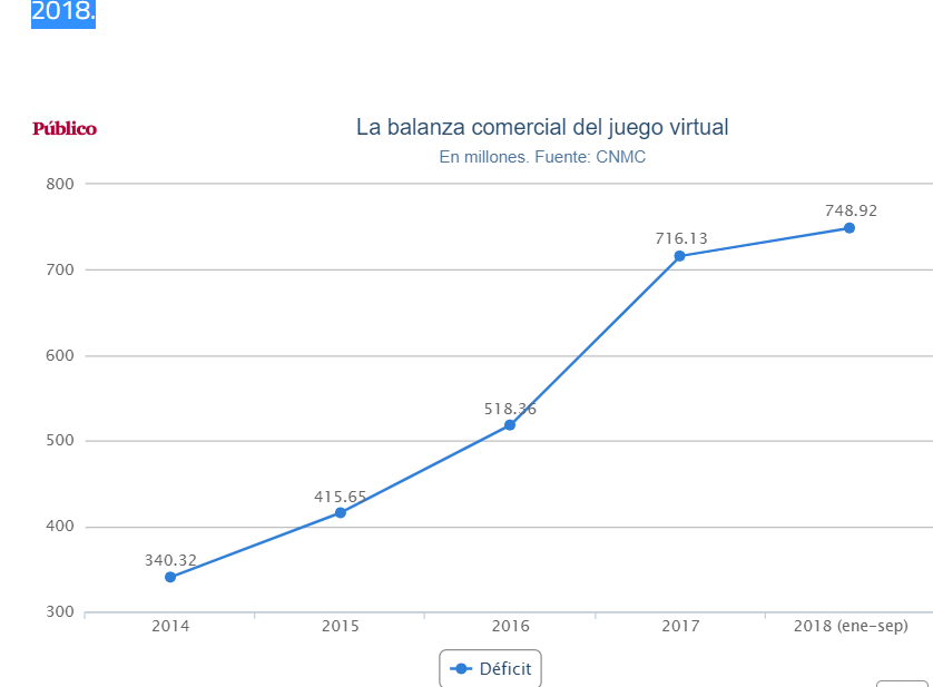España.- 16 de abril de 2019 www.zonadeazar.com La desmesurada afición de los internautas españoles a los juegos de azar y la fuerte presencia en el mercado de empresas de otros países generan un creciente déficit comercial que lleva camino de alcanzar los mil millones de euros anuales.